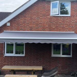 INT400 – Half Cassette – Garden Patio Awnings | Retractable Manual Control Heavy Duty | 40mm bar | Colour White Frame Grey Fabric 300gsm
