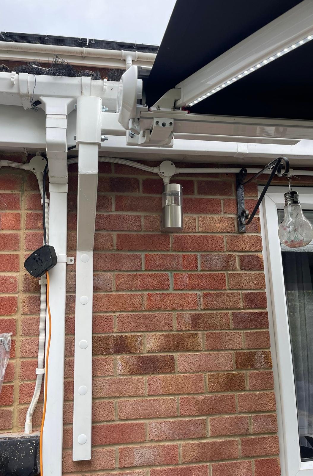 Unlike standard gutter brackets, this solution enables the awning to be moved away from obstacles not only outward from the wall but also sideways, making it ideal for complex installations around gutters, downpipes, lights, and architectural features.