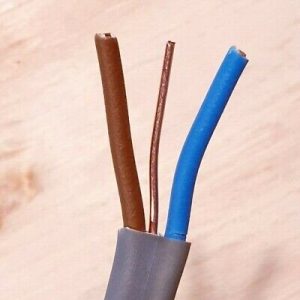 1mm, 1.5mm, 2.5mm – Solid Plain Copper Cores (Brown – Live, Blue – Neutral, Bare Earth Core – Earth) Grey PVC Insulation.
